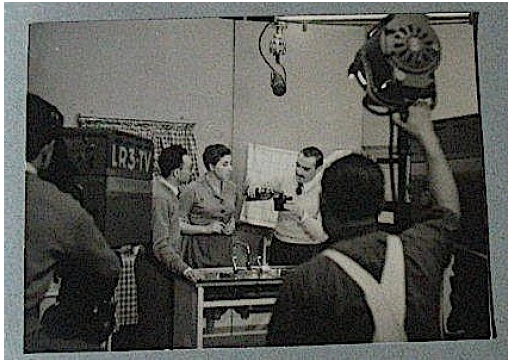 Con gran simpleza argumental, el autor anónimo de la nota iba desechando las motivaciones referidas al pasatiempo -hobby-, a la vocación artística y profesional para concluir que la razón más común por la cual una mujer quiere una cámara fotográfica es el de tomarse instantáneas en el tiempo libre o en la vida familiar. En la década de 1950, el Foto Club Buenos Aires realizó dos ciclos de divulgación fotográfica por televisión en Radio Belgrano TV. El primer ciclo, de 1953, se llamaba "El mundo de la Fotografía" y los temas seleccionados para cada emisión no distaban mucho de los temarios que tenían las revistas especializadas y los manuales de fotografía: "La fotografía es un arte"; "Cómo se maneja una cámara fotográfica"; "La fotografía de ayer y de hoy"; "Cómo revelar en su casa"; "Un jurado en acción". El segundo ciclo fue en 1955, esta vez con veinte audiciones, y patrocinado por ARGEN S.A. Es interesante que en las fotografías que conserva el Foto Club sobre aquellas emisiones, en el único momento en que aparece una mujer es en la sección "Cómo revelar en su casa", que pueden verse en las figuras 5, 6, 7 y 8. Los actores eran socios del Foto Club. Se podría decir, que esas emisiones televisivas contribuyeron a mantener el rol de ama de casa de la mujer participante. Si bien esta atendía y observaba con interés lo que hacían sus compañeros -quizás ella también sabía utilizar la cámara- sus tareas domésticas coexistían con sus intereses por la fotografía. O así lo hace notar la escena donde seca los platos.