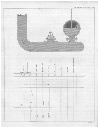 Representación de un cilindro de agua añadida por Babbage para ilustrar su notación mecánica