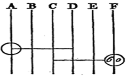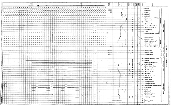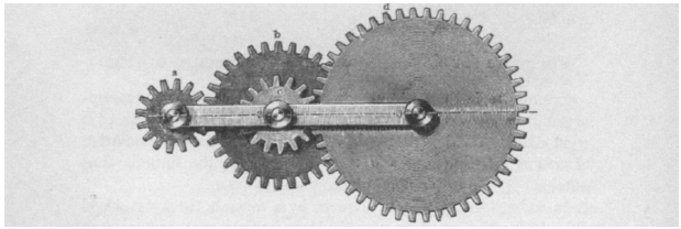 Figura 4: Representación simbólica de un reloj de ocho días añadida por Babbage para ilustrar su notación mecánica