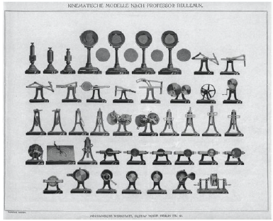 Esta consideración fue profundizada por otro ingeniero formado en matemáticas, Franz Reuleaux. En su Theoretische Kinematik, publicada en 1875, Reuleaux añadió una serie de fundamentos matemáticos y topológicos, que por primera vez fueron aplicados a la ingeniería39, con los que aisló, en buena medida, los principios geométricos de los "mecanismos puros" de Willis. La idea de que el diseño de cada máquina descansa sobre la combinación de ciertas formas finitas y susceptibles de ser clasificadas y caracterizadas, llevó a Reuleaux a elaborar un inventario de los mecanismos existentes para construirlos.