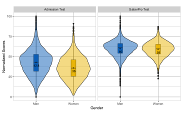 Figure 9: Escalated scores in the admission and Saber Pro tests by gender