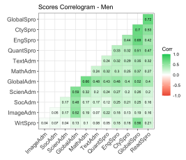 Figure 15: Correlogram for the admission and exit exam scores (men)
