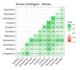 Figure 16: Correlogram for the admission and exit exam scores (women)