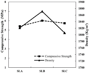 Figure 6: Comparison between compressive strength and density for series I