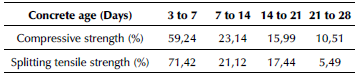 Table 7: Conversion factor regarding compressive and splitting tensile strength
