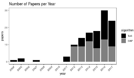Figure 1: The number of paper per year per algorithm.