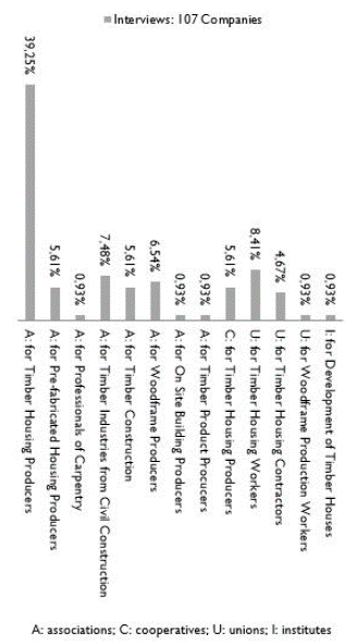 Due to the lack of organizations that are reportedly focused on the timber housing production sector, several companies were motivated to participate in entities from other related activities (Figure 1a).
