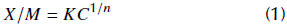 The data of the adsorption isotherms were adjusted using the Freundlich adsorption model, represented by Equation (1):
