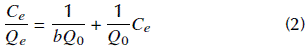 The linearized form of the Langmuir equation (Equation 2) was used to adjust the values obtained in the adsorption tests with the waste solution: