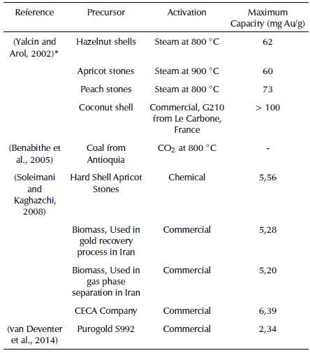 The sorption capacity of the activated carbons toward gold can be seen in Table 6 compared with other carbonaceous materials prepared from different waste and coals