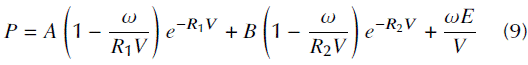 where V is the relative volume, E the internal energy, and ω the Grüneisen coefficient.