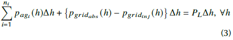 where pagi (h) is the power of the active generators, and Pgridahs (h) and pgridinj (h) are the absorbed/injected power from/to the main grid.