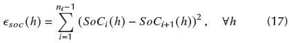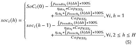 The SoC of the ESSs, soc¡ (h), can be estimated using the Ah-counting method as a function of the previous time and the energy stored/discharged at the current time, so that,