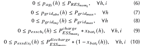 The definition of a set of constraints is required to confine the solution to a feasible region. First, the microgrid must comply with the energetic balance (as shown in Figure. 1) which can be defined as,