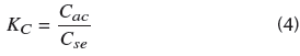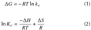 where C ac is the concentration of theadsorbate in equilibrium, contained in the surface of the adsorbent, C se is the concentration in solution in the equilibrium, and R is the universal constant of the gases (8,314 J/mol.K).
