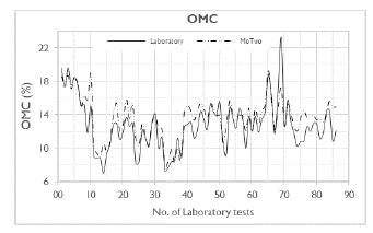 Figure 3: Comparison between results obtained with MoTuo and laboratory tests for OMC (validation set).