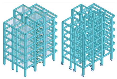 Figure 2: Structural model with fixed supports (left) and equivalent springs (rigth) at the base.