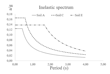 Figure 3: Inelastic seismic design spectrum for each soil type.