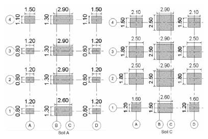 The definitive dimensions for each foundation system and for each soil type are shown in Figures 10 and 11, according to (Perez-Valcarcel, J., 2013; Garza-Vasquez, 2000; Paz, 1992).