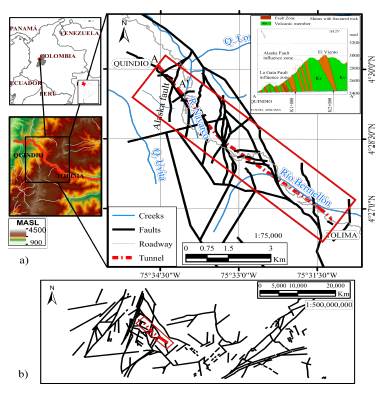 The Alaska fault is located in the La Línea massif and is crossed by the drilling of two tunnels (Figure 1). These tunnels belong to an important roadway project in the Colombian Andes.