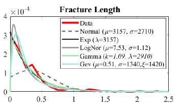 Figure 3: Probability density functions for fracture length in Alaska fault zone in the La Línea tunnel.
