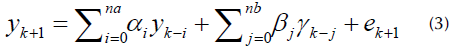 where y k+1 is the predicted value, α i and ß j are the model parameters, and y k and y k correspond to the entry variable and the exogenous variable, respectively. The parameters are estimated by the method of least squares, which requires a series section of at least 50 registers (Box et al., 2016; Shmueli and Lichtendahl, 2016). In the ARX(nα,nb) model, na and nb represent the autoregressive delays that are used in each variable.
