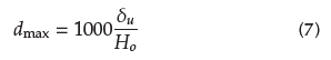 where δ u is the lateral displacement at the top of the building, defined in DS 61 MINVU (2011), and H0 is the total height of the building above the ground level.