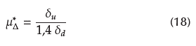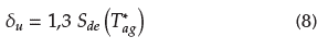 where δu is the design's lateral displacement on the top of the building as defined in DS 61 MINVU (2011), and δd is the design's lateral displacement on the top of the building, determined with the elastic design response spectrum reduced by factor R**, i.e., Sae/R**.