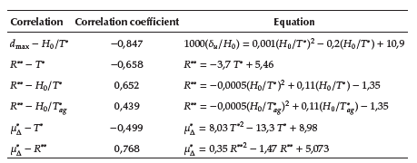 Table 5 shows the analyzed variables, the correlation coefficients, and the equations found.