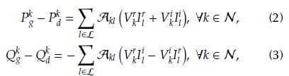 d are the active power generation and demands at node k, respectively; Qk