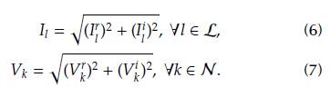 Remark 1. The mathematical formulation presented inEquations (1)to (10) is not unique, since multiple representations can be reached by representing the real and imaginary parts of the currents as a combination of magnitudes and angles, i.e., trigonometric functions. However, these trigonometric functions introduce complex nonlinearities that can make the solution to the problem difficult.