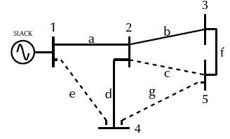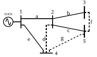 Figure 2: 5-node test system to illustrate the AC reconfiguration problem