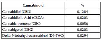 Table 3: Identified cannabinoids and percentage in the final extract