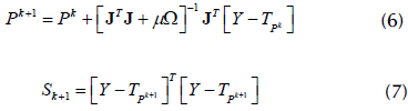 where P k+1 is the candidate parameter, J is the sensitivity matrix, Ω is the diagonal of the matrix JTJ S k+1 is the likelihood function, Y is the experimental temperature, and T pk is the numerical temperature. This method for estimating electrical conductivity is described in Algorithm 3.