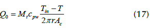 where M t is the mass flow, cpw is the heat capacity of water, Tin is the initial temperature, r is the inner radius, and A c is the cross section of the coil.