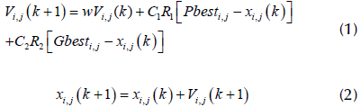 In the PSO algorithm, the i-th particle is treated as a point within a space of N dimensions, and it is represented by a vector x . The best position found by the i-th particle is the position that produces the best value of the objective function, represented by Pbest i . ,j, while the best position found by the entire population is represented by Gbest.. The velocity for the i-th particle is represented by V . The velocity and position of the particles are calculated via Equations (1) and (2) (Kennedy and Eberhart, 1995):