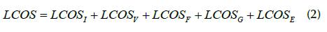 where, LCOE I (US$/kWh) represents the investment costs per energy unit, LCOE V (US$/kWh) denotes the variable operating and maintenance costs per energy unit, LCOE F (US$/kWh) is the fixed operating and maintenance costs per energy unit, LCOE G (US$/kWh) represents the fuel costs per energy unit, and LCOE E (US$/kWh) denotes the externality costs per energy unit. It is worth noting that, while calculating the LCOS for MSW plasma gasification, the fuel cost was assumed to be zero, since the plant does not pay for the fuel. Meanwhile, the externality costs were considered as the amount of money (USD/t of MSW) that the plant receives for the treatment of MSW.