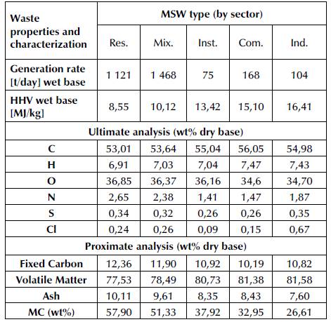 Table 1: Generation rate, heating value, and ultimate and proximate analyses of MSW produced in Medellin, Colombia