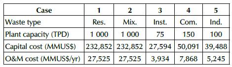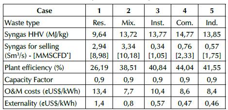 Case 2 has associated the highest investment cost that is compensated by the two mentioned variables (high energy production and low O&M costs). Thereby, case 2 could generate a unity of energy with the lowest cost. This result is highlighted because it represents the mixture of all waste types, which is the main MSW problem due to the increasing production rate (Superintendencia de Servicios Públicos Domiciliarios, 2017).