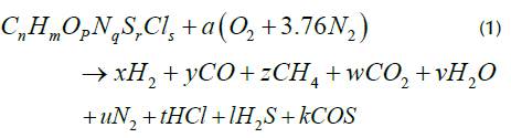 The Plasma-G process was successfully modelled under a thermo-chemical equilibrium approach (Montiel-Bohórquez et al., 2021). There, the syngas composition and torch power consumption associated with MSW Plasma-G, as well as the energy and exergy efficiencies of the process, were estimated. The Plasma-G was modeled by means of a thermochemical equilibrium approach, simulating a moving bed updraft plasma gasifier, which works at atmospheric pressure and uses air as plasma gas in the DC torches (Figure 1). The global gasification equation modelled is presented in Equation (1) (Minutillo et al., 2009).