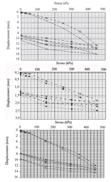 Figure 3: Load-plate test results from: a) polygon 1, b) polygon 2, c) polygon 3.
