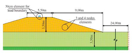 The constitutive model used, Mohr-Coulomb, is well suited for soil behavior at breakage; it stands out over the others because the parameters can be determined from laboratory tests. Regarding the system of loads, stresses applied according to the test at different stages of construction were used (Mesa, et al., 2016). The numerical model of this study is limited to a plane strain model.