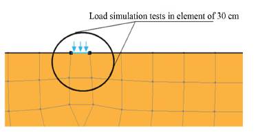 Figure 9: Zoom-in of the simulation of the load-plate test on the finite element size of 30 cm.