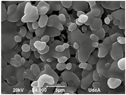 The samples were fixed on graphite tape, and a thin gold coating (Au) was made using DENTON VACUUM Desk IV equipment. The analysis was performed in a high-vacuum scanning electron microscope (JEOL JSM 6490 LV) to obtain high-resolution images. A secondary electron detector was used to evaluate the morphology and topography of the samples. The elemental analysis was carried out by energy-dispersive X-ray spectroscopy (EDS; INCA PentaFETx3, Oxford Instruments). SEM images were taken from the pristine alumina and the MSBNFs after the DSC and MDSC measurements in order to verify the presence of the nanoparticles inside the molten salt, as well as to evaluate the agglomeration.