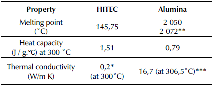 Table 1: Thermal properties of HITEC and alumina