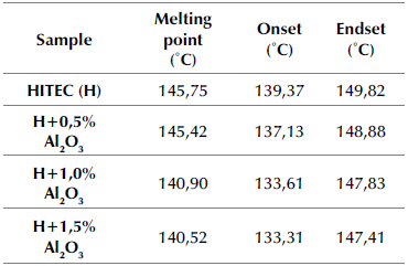 Table 3: Melting point of HITEC and MSBNFs with 0,5, 1,0, and 1,5 wt.% alumina nanoparticles