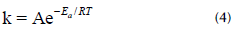 where A is the pre-exponential factor, E a is the activation energy, R is the ideal gas constant, and T is the temperature.