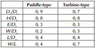 In this work, three different impellers were used to generate diverse flow patterns inside the system and observe the effect of different geometries on the dissolution process. The types of conventional agitators used were: