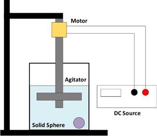 A sketch of the experimental set-up is shown in Figure 3. It consisted of a 1 000 ml beaker filled with 700 ml of water and a candy sphere (solute) immersed in it. The agitation was provided by means of an agitator coupled to a DC motor, whose angular frequency (ω) was controlled using a variable DC voltage source. The rotational speed was practically achieved as soon as the motor is started. Therefore, by changing ω, modifications of the flow pattern inside the tank were obtained.