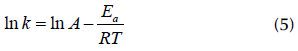 Activation energies E a for the dissolution process are determined by taking the natural logarithm of Equation (4), so that